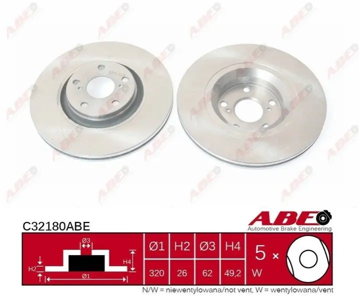 ABE C32180ABE диск гальмівний (передній) Toyota Avensis/Verso 08- (320x26)