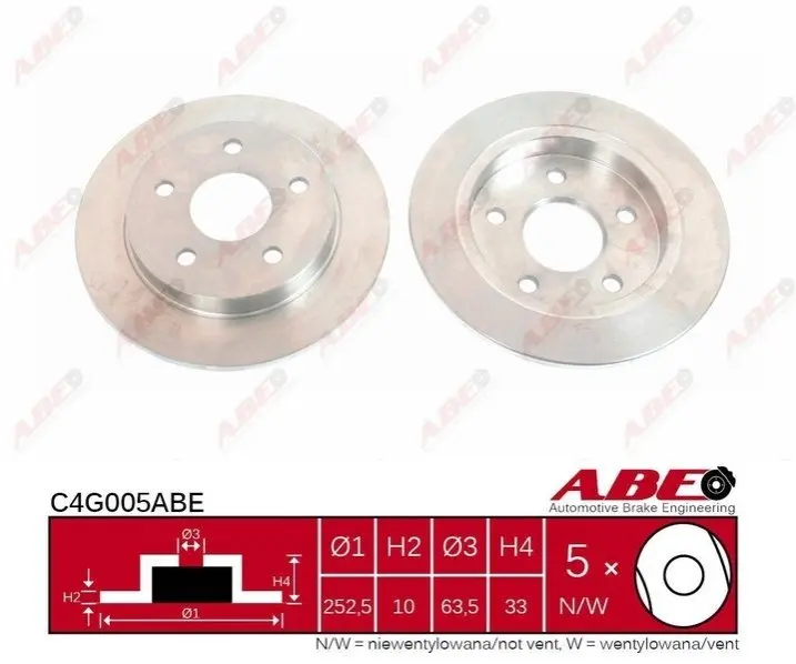 ABE C4G005ABE диск гальмівний (задній) Ford Scorpio 85-94 (253x10)