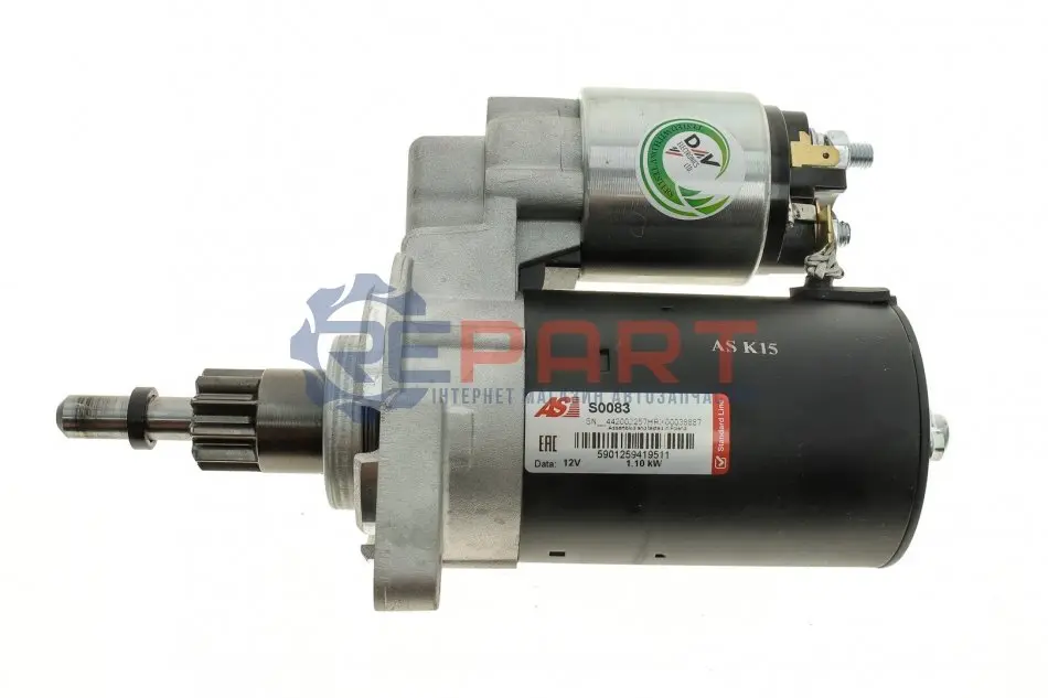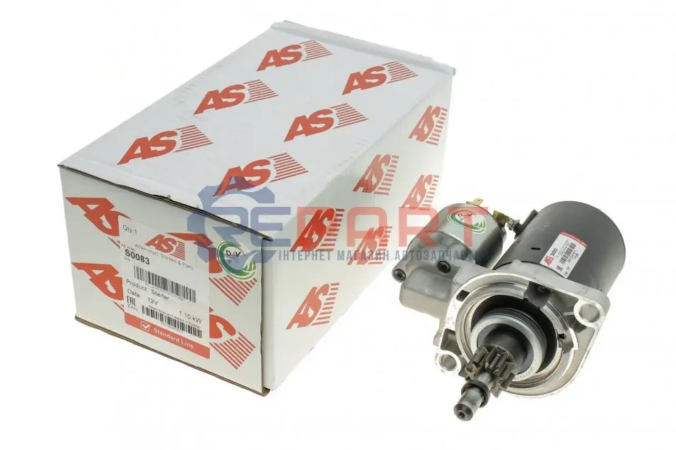 AS S0083 стартер VW Golf II 1.8 GTi 88-91/Passat (B3/B4) 1.8-2.0 88-96 (12V/1.1 kw) (z=10)