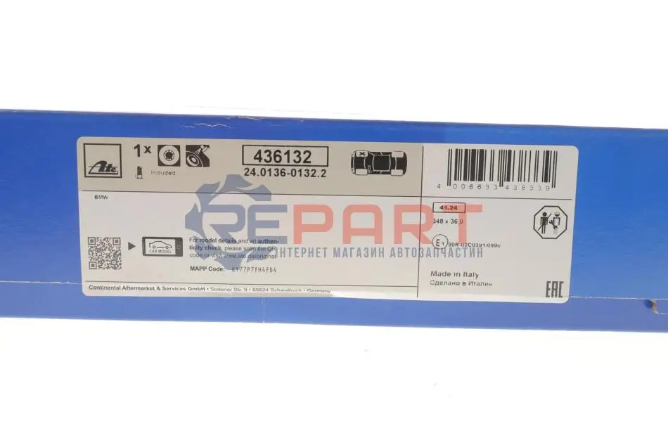 ATE 24013601322 диск гальмівний (передній) BMW 5 (G30/F90)/7 (G11/G12) 15- (348x36) (R)