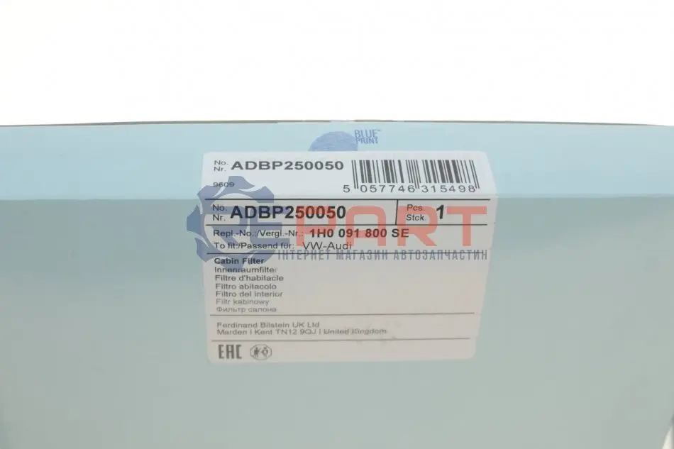 BLUE PRINT ADBP250050 фільтр салона VW Golf IV/Skoda Octavia/Audi A3 1.0-3.2 92-10 (вугільний)