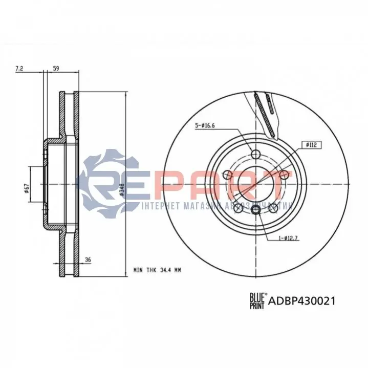 BLUE PRINT ADBP430021 диск гальмівний (передній) BMW 5 (G30/F90)/7 (G11/G12) 15- (348x36) (R)