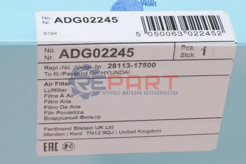BLUE PRINT ADG02245 фільтр повітряний Hyundai Matrix 1.5CRDI/1.6/1.8 01-10