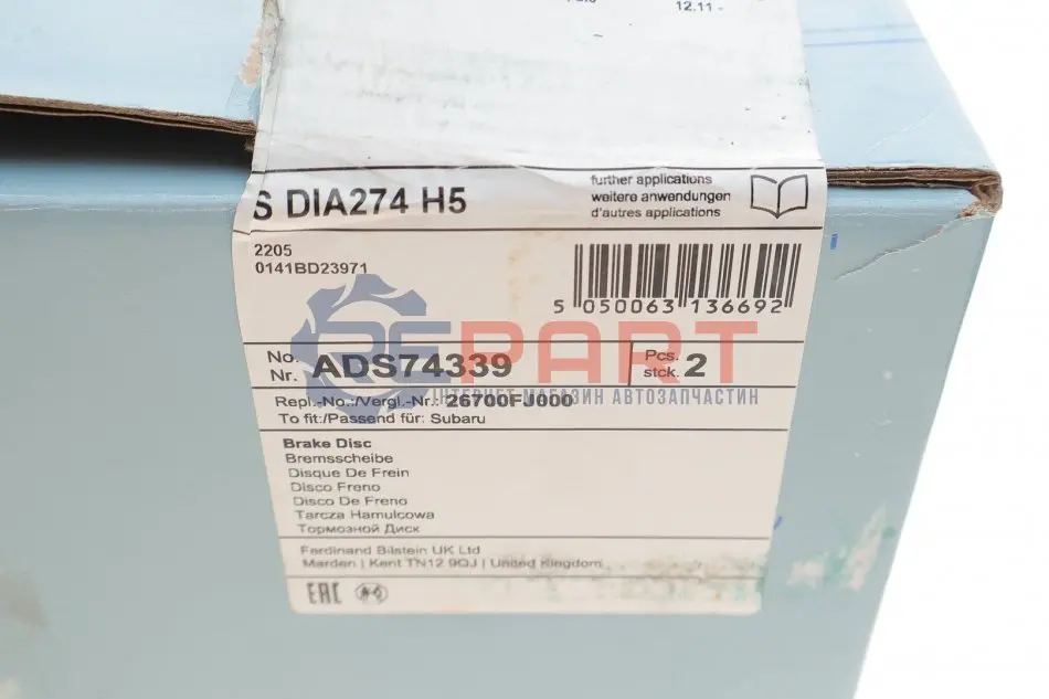 BLUE PRINT ADS74339 диск гальмівний (задній) Subaru Impreza/Forester 11- (274x10) (з покриттям) (повний)