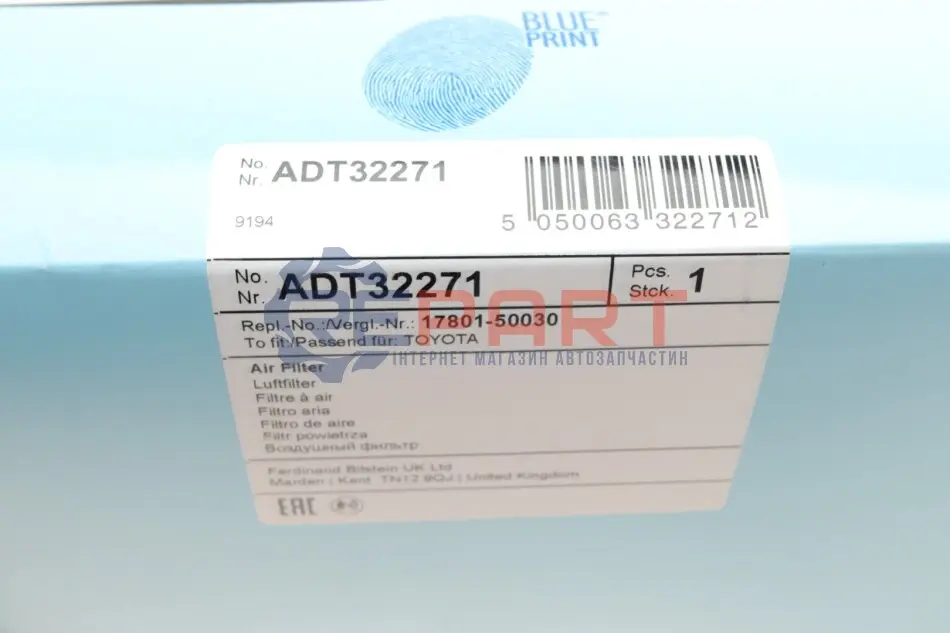 BLUE PRINT ADT32271 фільтр повітряний Lexus LS 430 00-06