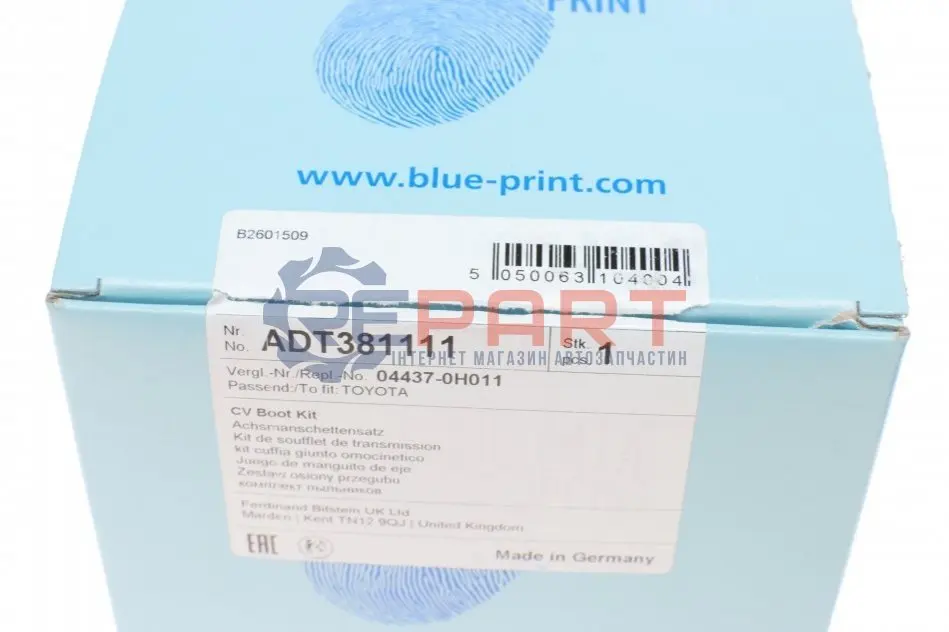 BLUE PRINT ADT381111 пильник ШРКШ (внутрішній) Peugeot 107 05-14 (к-кт хомути і змазка) (19x58x91mm)