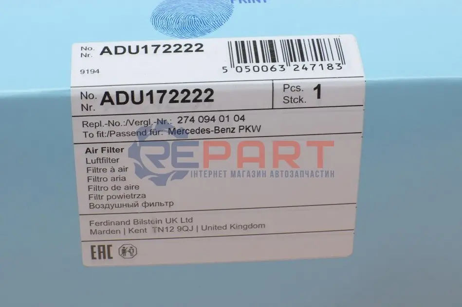 BLUE PRINT ADU172222 фільтр повітряний MB C-class (W205)/E-class (W212)/GLC (X253)/SLC (R172) 1.6/2.0 M274 14-