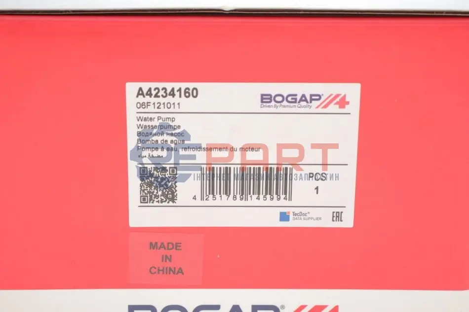 BOGAP A4234160 помпа води Audi A3/A4/A6 2.0TFSI 04-13/Skoda Octavia 2.0RS 05-13/VW Golf 2.0R 07-