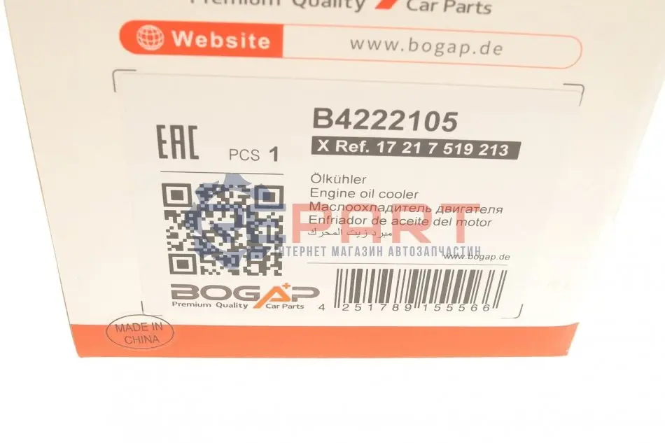 BOGAP B4222105 радіатор масляний BMW 5 (E60/E61)/7 (E65/E66/E67) 2.0-4.4 01-10 M54/N62