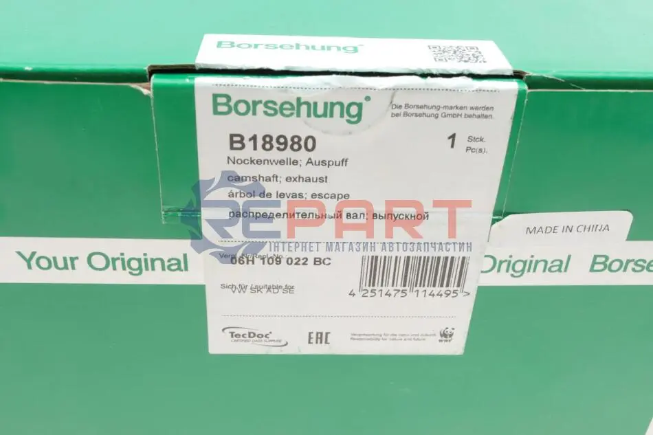 Borsehung B18980 розподільний вал VW Golf VI/Passat B6/B7 2.0 TSI 04-18 (випуск)