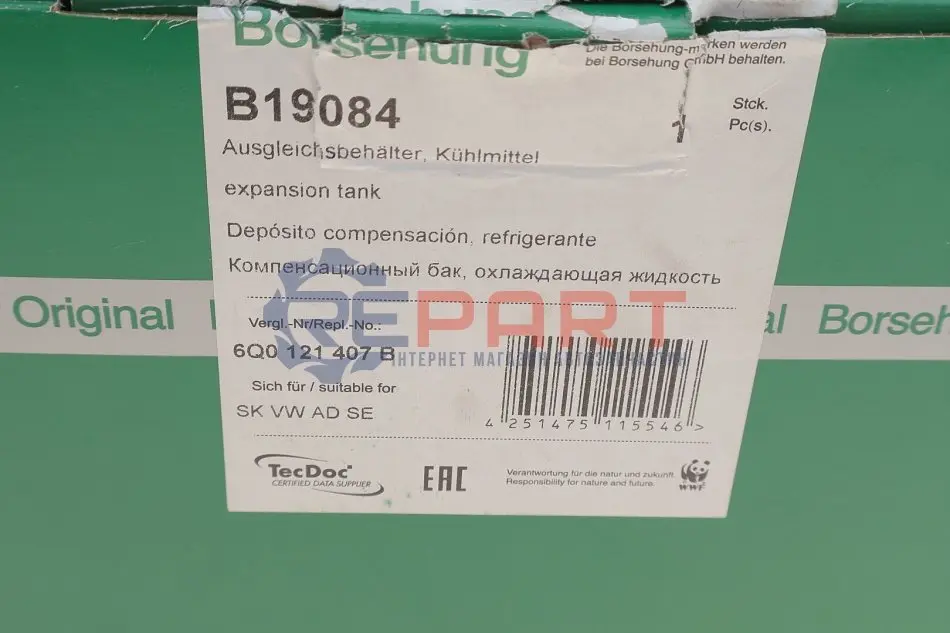 Borsehung B19084 бачок розширювальний VW Polo 09-/Skoda Fabia 99-/Rapid 12-19 (OE VAG)