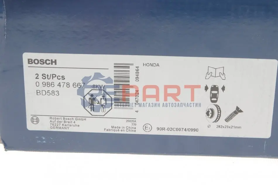 BOSCH 0986478667 диск гальмівний (передній) Honda CR-V 95-02/HR-V 99- (282x23) (з вентиляцією)