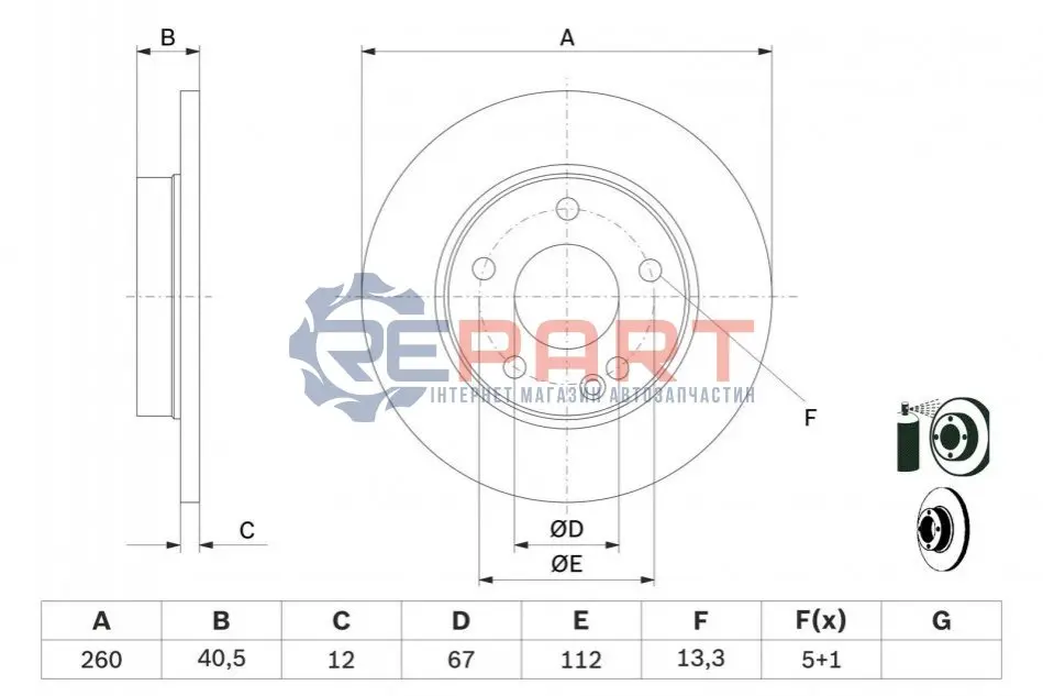 - Тип гальмівного диска