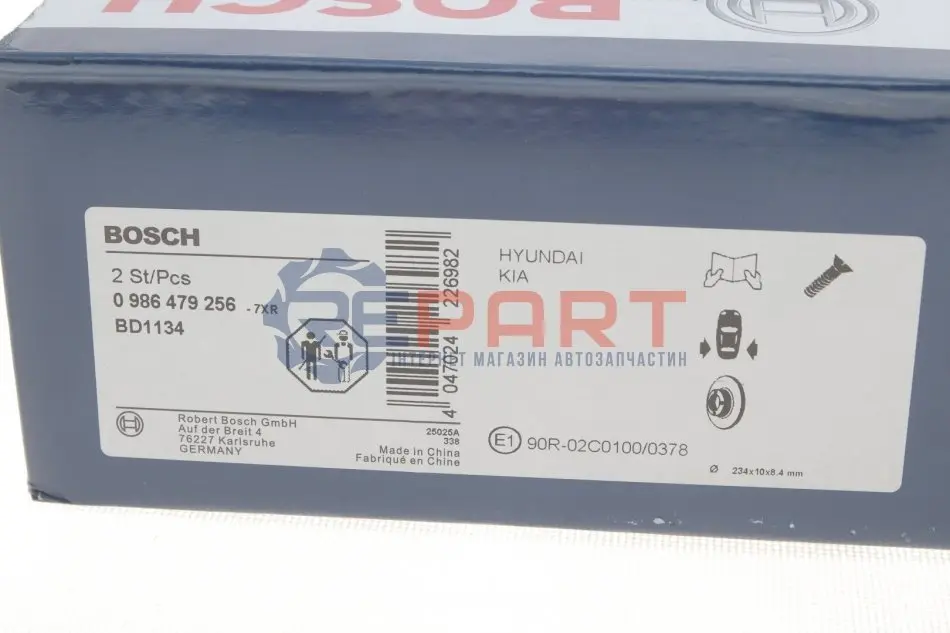BOSCH 0986479256 диск гальмівний (задній) Hyundai i10 08-17/Kia Picanto 04- (234x10)