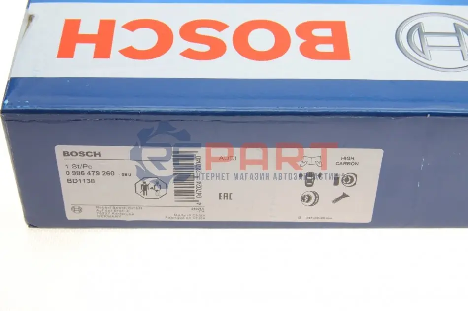 BOSCH 0986479260 диск гальмівний (передній) Audi A6 04-11 (347х30) (з покриттям) (вент.)