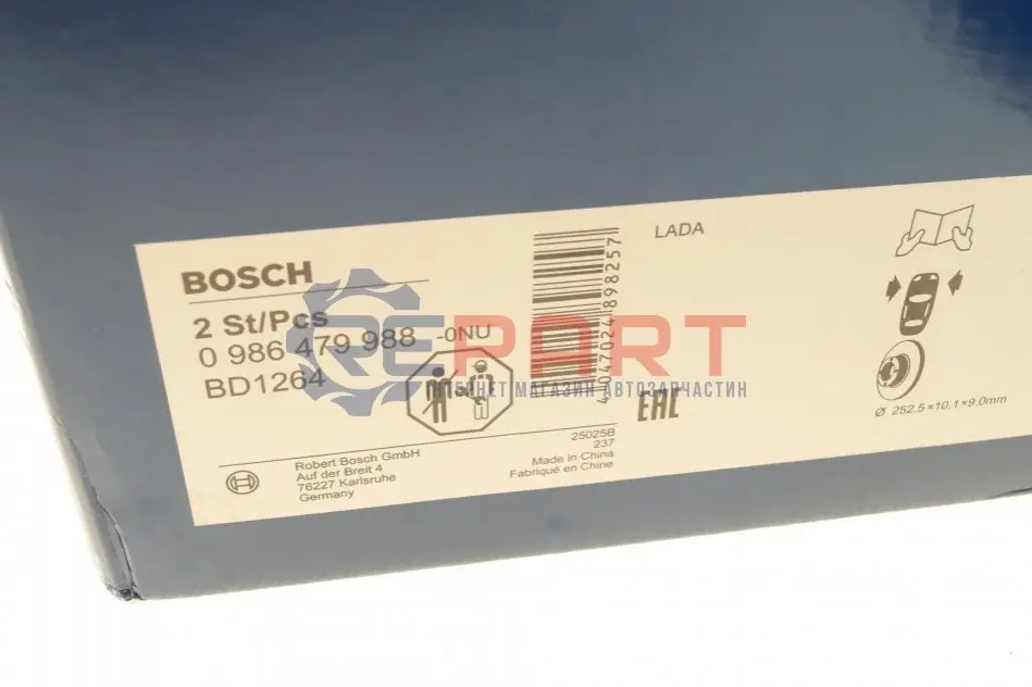 BOSCH 0986479988 диск гальмівний (передній) Lada 2101-2107/2121/2131 70- (252.5х10.1)