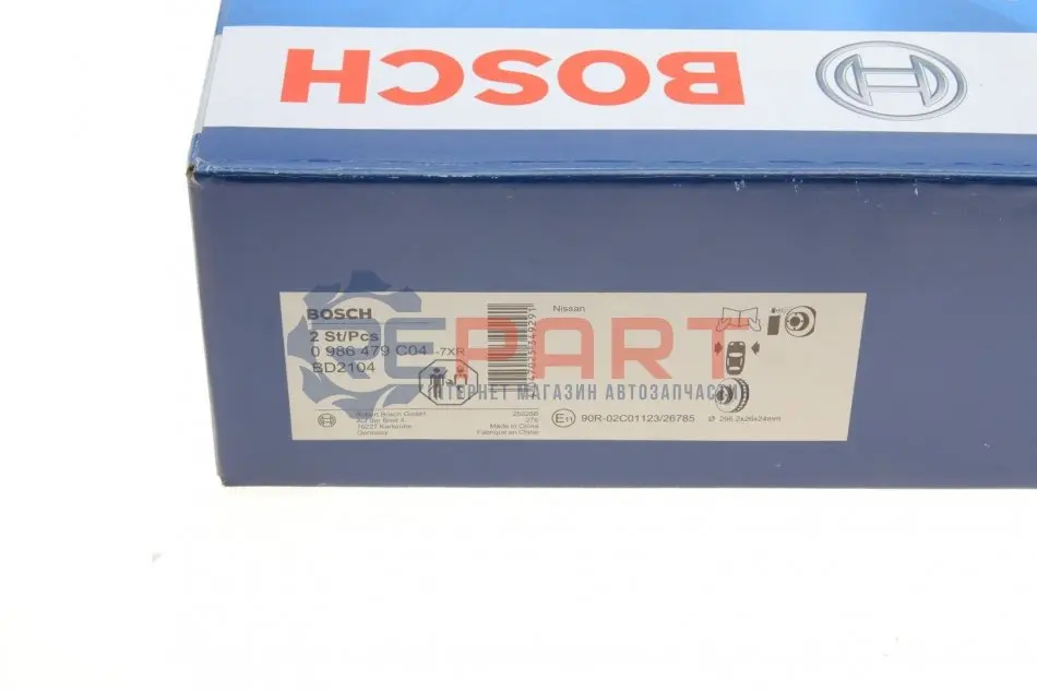 BOSCH 0986479C04 диск гальмівний (передній) Nissan X-Trail 2.0/2.5dCi 07-/Juke 1.6 10- (296x26)
