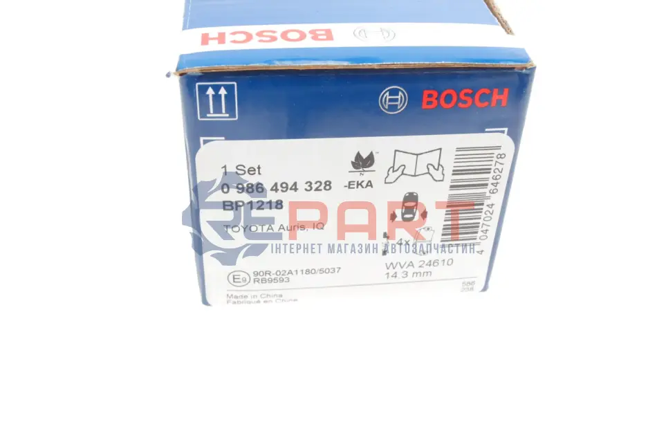 BOSCH 0986494328 колодки гальмівні (задні) Toyota Corolla/Auris 06-14/IQ/Urban Cruiser 09-15/Prius 12-/Yaris 05-
