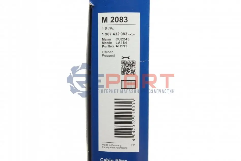 BOSCH 1987432083 фільтр салону Citroen Berlingo/Peugeot Partner 1.1-2.0HDI -08 (вугільний)