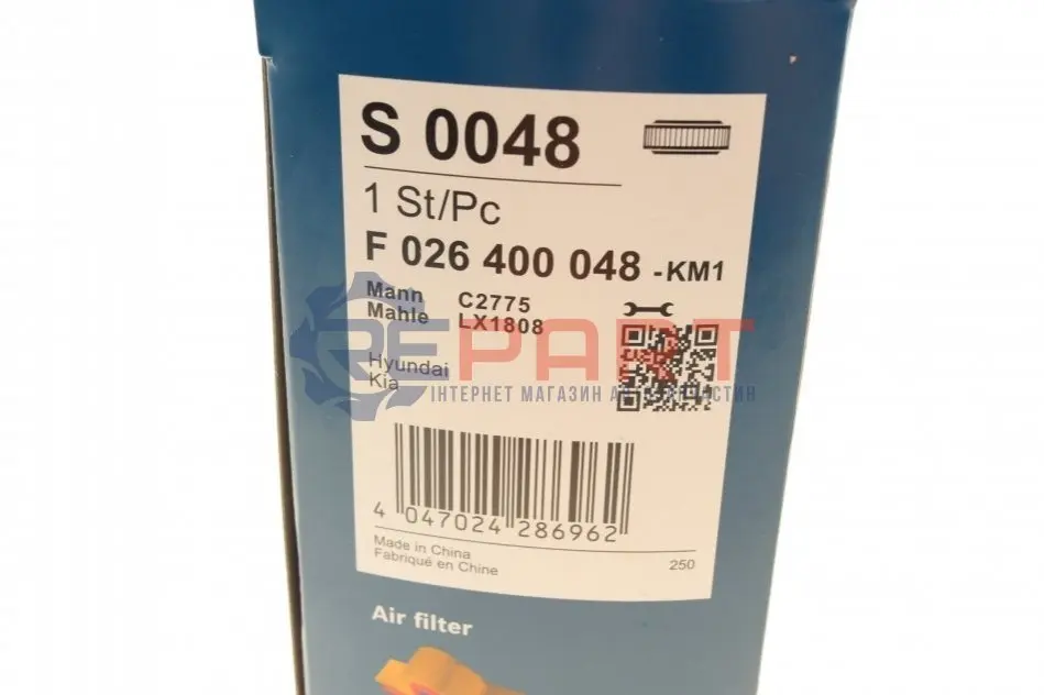 BOSCH F026400048 фільтр повітряний Hyundai Accent III/Kia Rio II 1.4GL/1.6GLS 05-11