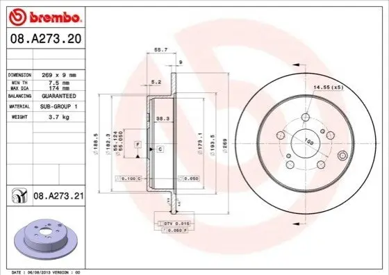 BREMBO 08A27321 гальмівний диск