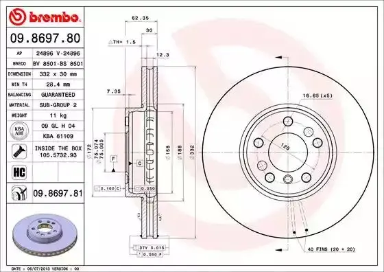 BREMBO 09869780 гальмівний диск