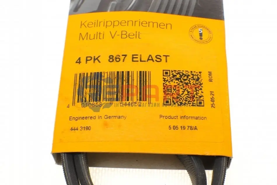 Contitech 4PK867ELAST ремінь генератора BMW 5 (E60)/X3 (E83/)X5 (E70)/X6 (E71/E72) 3.0D 04-13 M57
