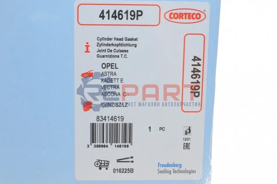 CORTECO 414619P прокладка ГБЦ Opel Astra F/G/Kadett E/Vectra A/B 1.6 -02 (1.3mm)