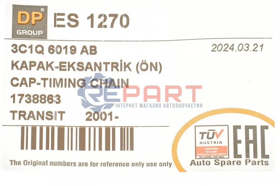 DP Group ES 1270 кришка двигуна (передня) Ford Transit V184 2.4Di 00-06