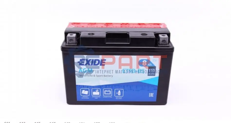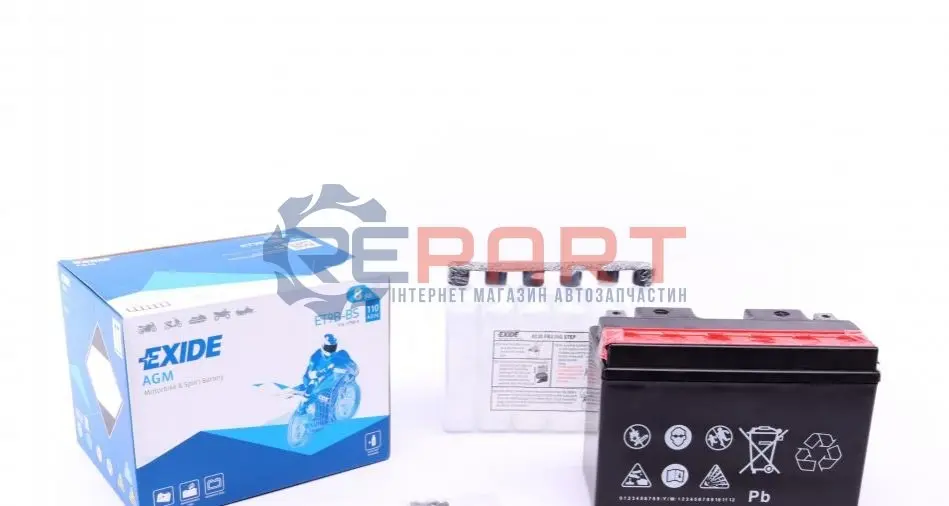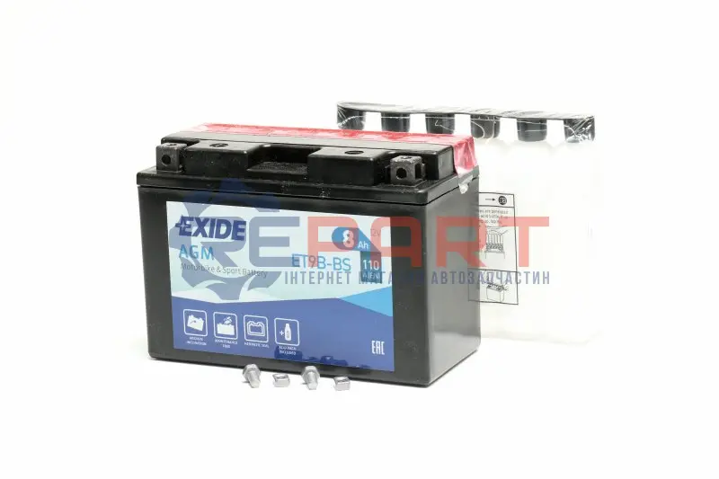 EXIDE ET9B-BS акумуляторна батарея 8Ah/110A (150x70x105/+L/B0) (AGM) (мото) (сухозаряджений)