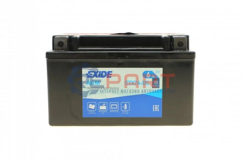EXIDE ETX7A-BS акумуляторна батарея 6Ah/90A (150x87x93/+L/B0) (AGM) (мото) (сухозаряджений)