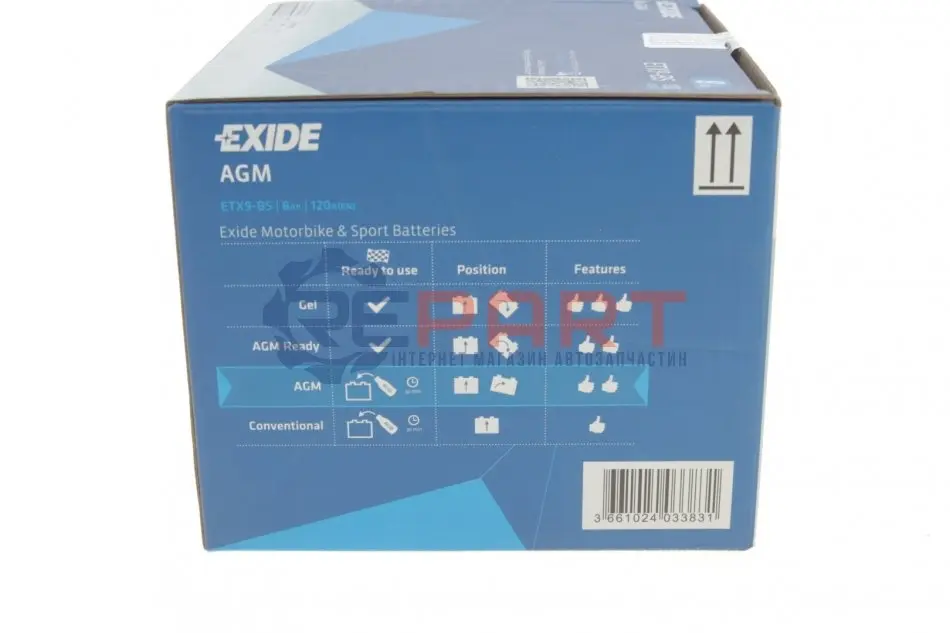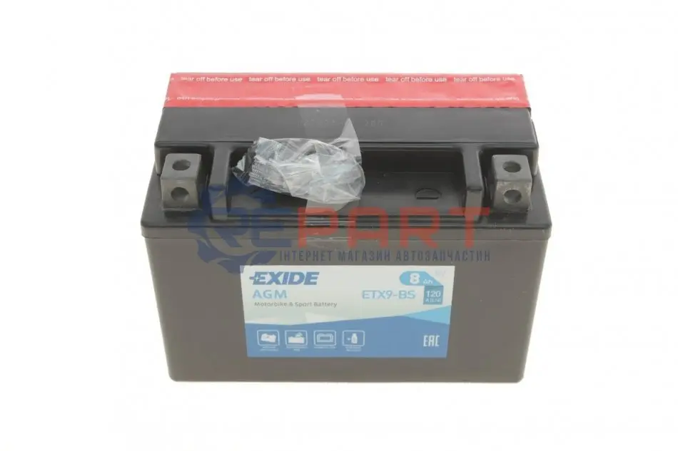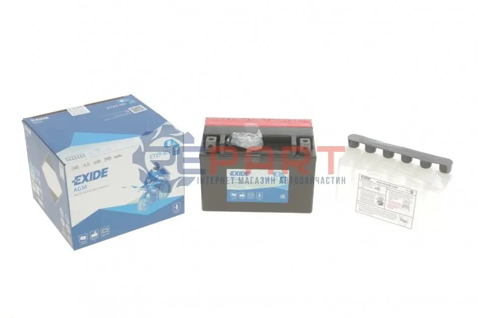 EXIDE ETX9-BS акумуляторна батарея 8Ah/120A (150x87x105/+L/B0) (AGM) (мото) (сухозаряджений)