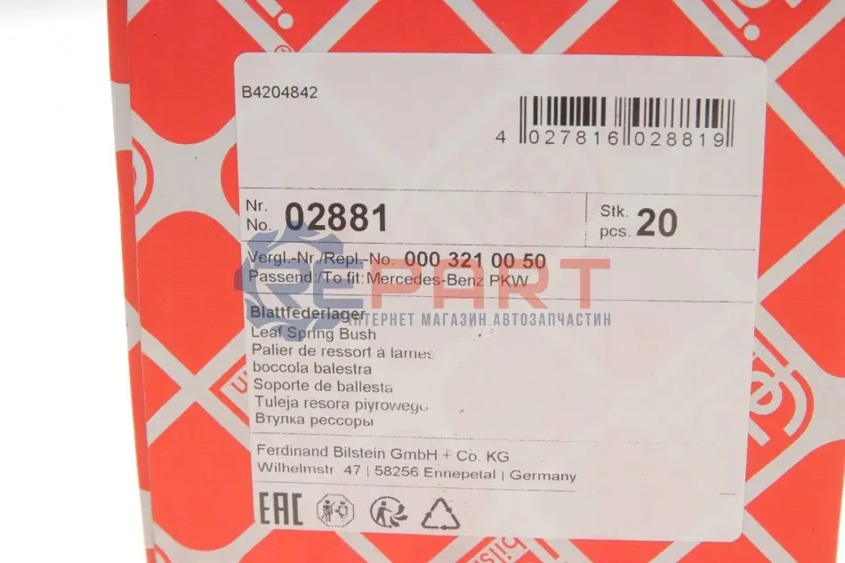 FEBI BILSTEIN 02881 сайлентблок ресори (передньої) MB 208-410
