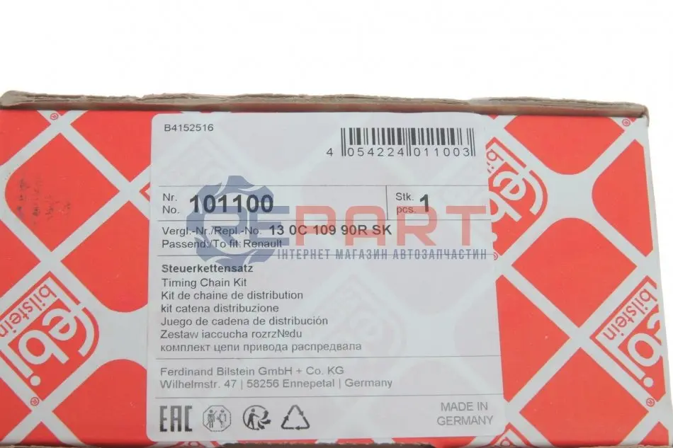FEBI BILSTEIN 101100 комплект ланцюга ГРМ Renault Trafic 1.6 DCi 14- (ланцюг, натяжник, шестерня)