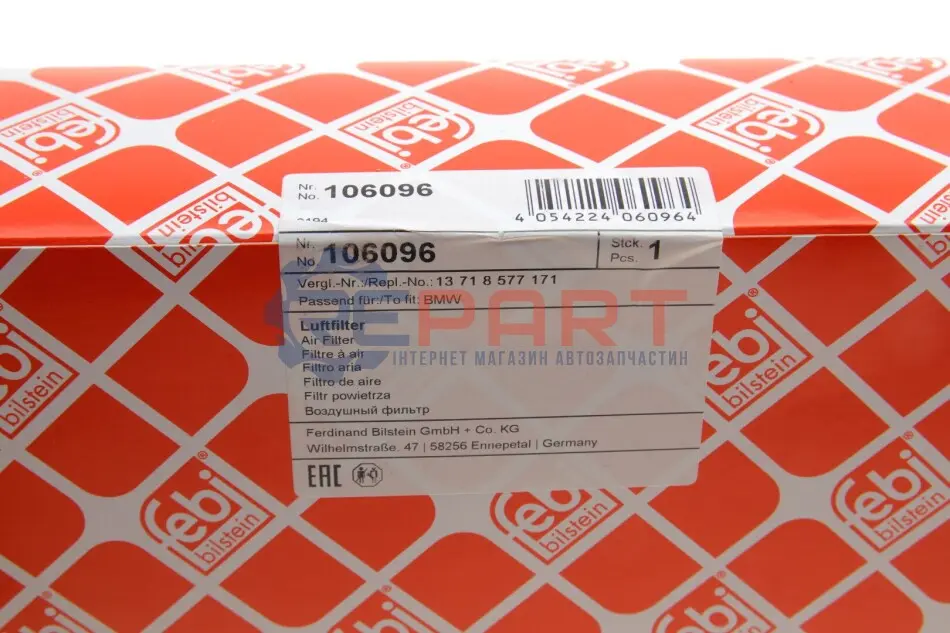 FEBI BILSTEIN 106096 фільтр повітряний BMW 5 (G30/F90)/ 7 (G11/G12) 2.0/ 16- (B47/B48/B58)