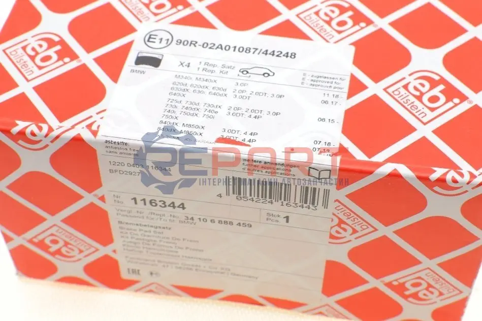 FEBI BILSTEIN 116344 колодки гальмівні (передні) BMW 3 (G20/G21)/5 (G30/G31)/7 (G11/12)/X5 (G05)/X6 (G06) 15-