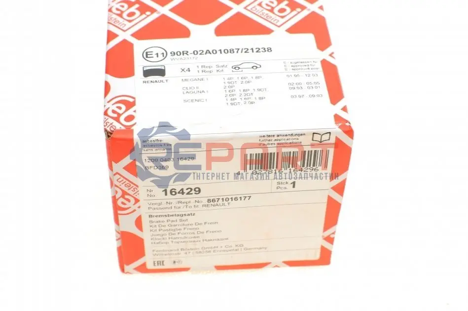 FEBI BILSTEIN 16429 колодки гальмівні (передні) Renault Clio II 00-/Megane I 96-03 (129.1x55.5x17.8)