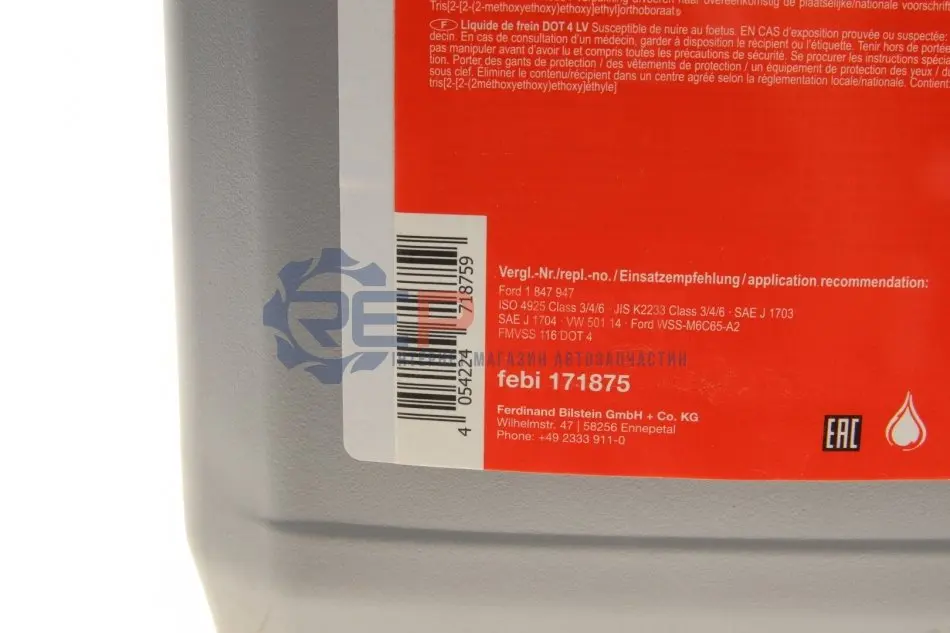 FEBI BILSTEIN 171875 рідина гальмівна DOT4 LV (4L)