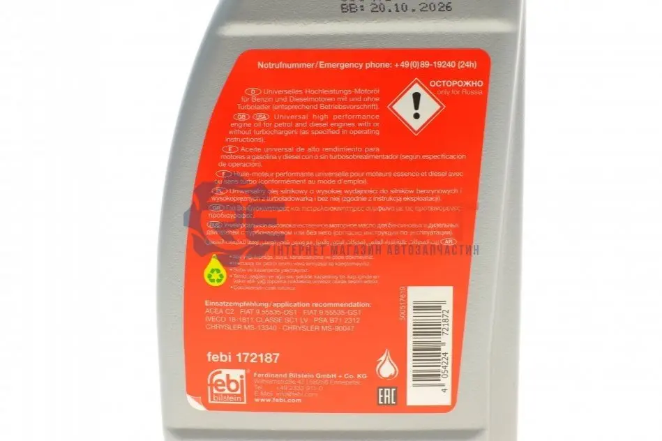 FEBI BILSTEIN 172187 олива 0W30 C2 SAE (1л) (ACEA C2/MS-13340/MS-90047/9.55535-DS1)