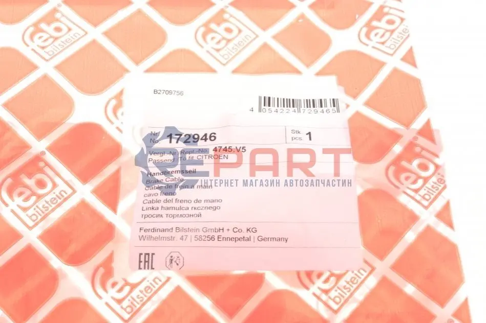 FEBI BILSTEIN 172946 трос ручника (задній) Fiat Ducato/Citroen Jumper/Peugeot Boxer 02- (2827mm)