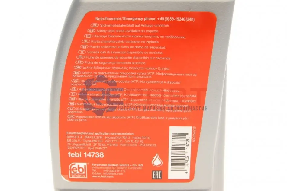 Всі запасні деталі від виробника FEBI мають якість, підтверджене сертифікатами системи TUV відповідно до вимоги стандартів ISO 9002. Тому кожна деталь має довгострокову гарантію. Асортимент запасних частин компанії-виробника FEBI повністю покриває потребу таких автомобільних брендів, як BMW, RENAULT, OPEL, VW, ALFA ROMEO, VOLVO, MERCEDES, AUDI, PEUGEOT, FIAT, Mikra, Note, Almera, Primera, X-Trail, Murano, QASHQAI, Infiniti.