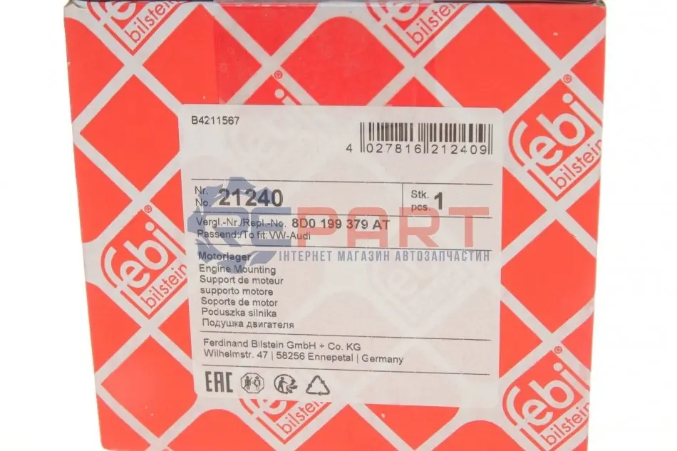 FEBI BILSTEIN 21240 подушка двигуна (передня) Audi A4/A6/ VW Passat 2.4-2.8 97-05