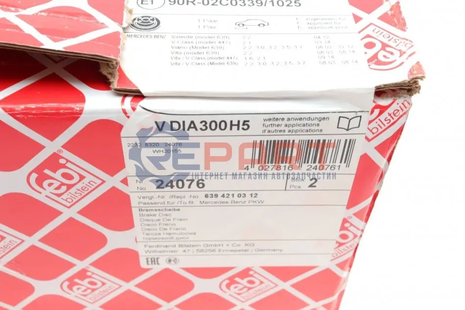 FEBI BILSTEIN 24076 диск гальмівний (передній) MB Vito (W639) 03- (300x28)