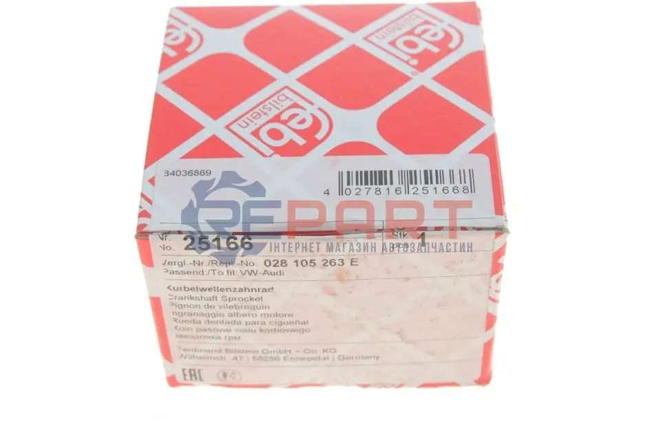 FEBI BILSTEIN 25166 шестерня колінвалу VW 1.6D-1.9D