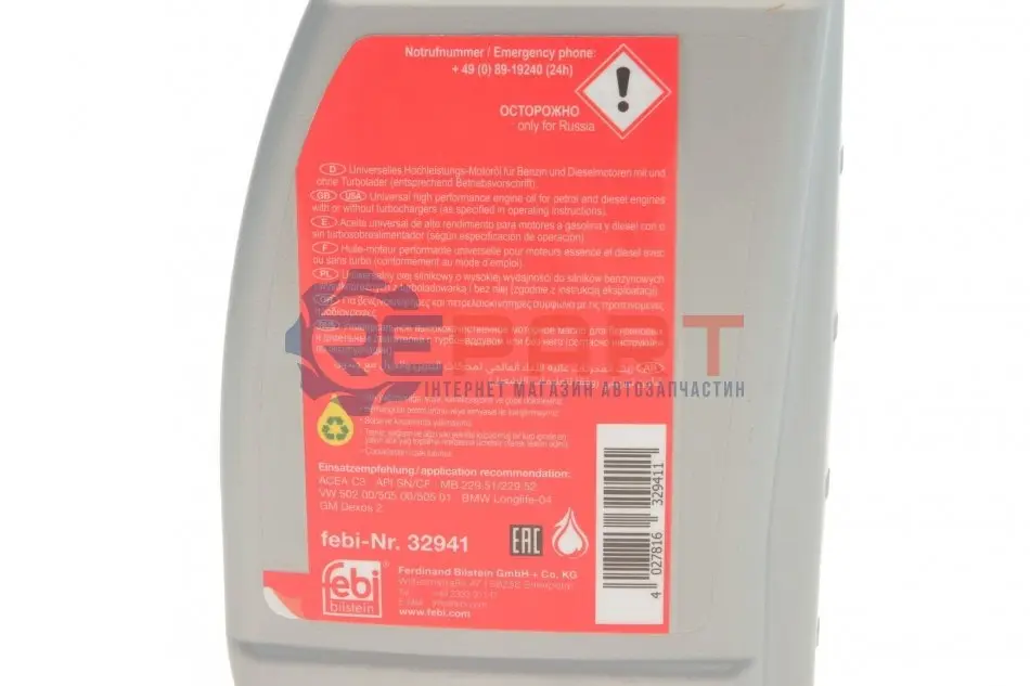 FEBI BILSTEIN 32941 олива Longlife 5W30 (1L) (GM Dexos 2/MB 229,51/229,52/VW 502 00/505 00/505 01)