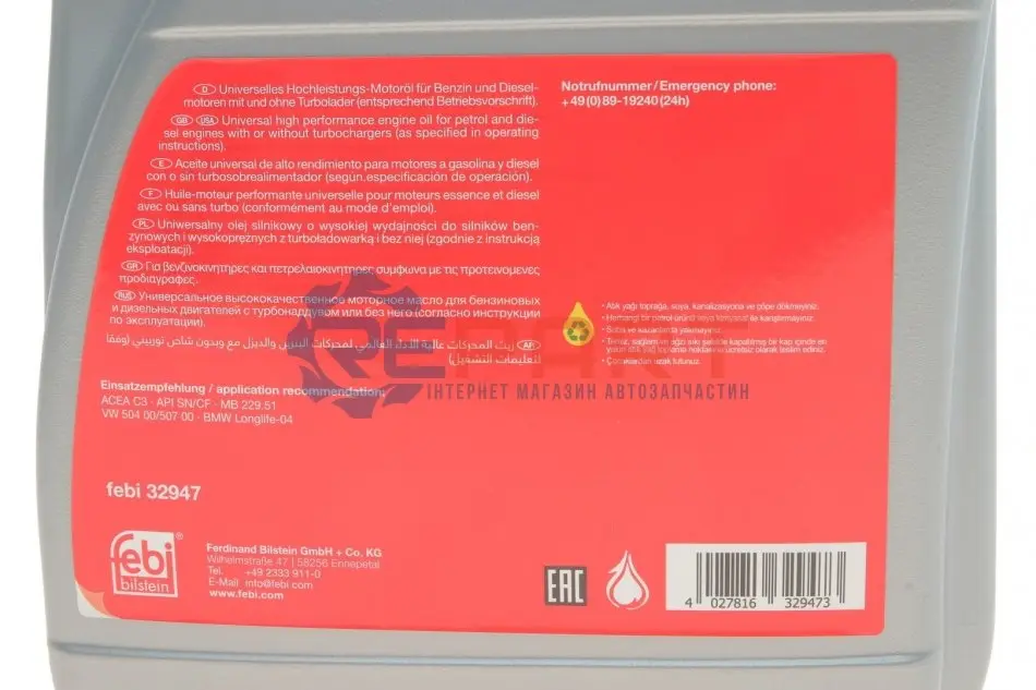FEBI BILSTEIN 32947 олива Longlife Plus 5W30 (5L) (VW 504.00/507.00/MB 229.51)