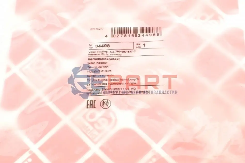 FEBI BILSTEIN 34498 датчик зносу гальмівних колодок (задніх) VW Touareg 10-/Porsche Cayenne/Panamera 09-