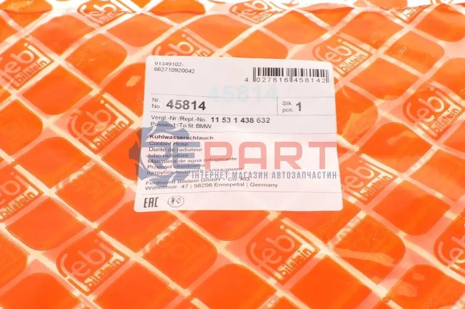 FEBI BILSTEIN 45814 патрубок радіатора (нижній) BMW 5 (E39) 2.0i-3.0i 96-04 M52/M54