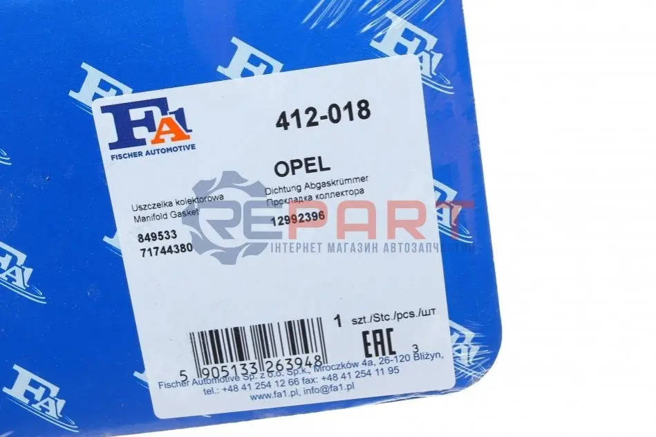 Fischer Automotive One (FA1) 412018 прокладка колектора випускного Opel Astra J/H/Vectra C