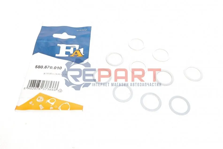 Fischer Automotive One (FA1) 580.870.010 прокладка пробки зливної масляного піддону Ford Focus/Mondeo 2.5 PFI 04-14 (18x24x1.5) (к-кт 10шт)